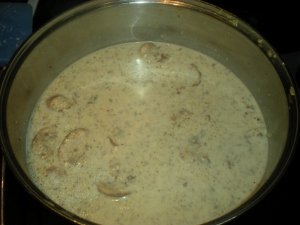 Melt the butter in the same large saucepan and sauté the onion and mushrooms until the onion is opaque and tender, about 7-8 minutes. Remove 1 1/2 cups (375 ml) of the mixture and set aside.